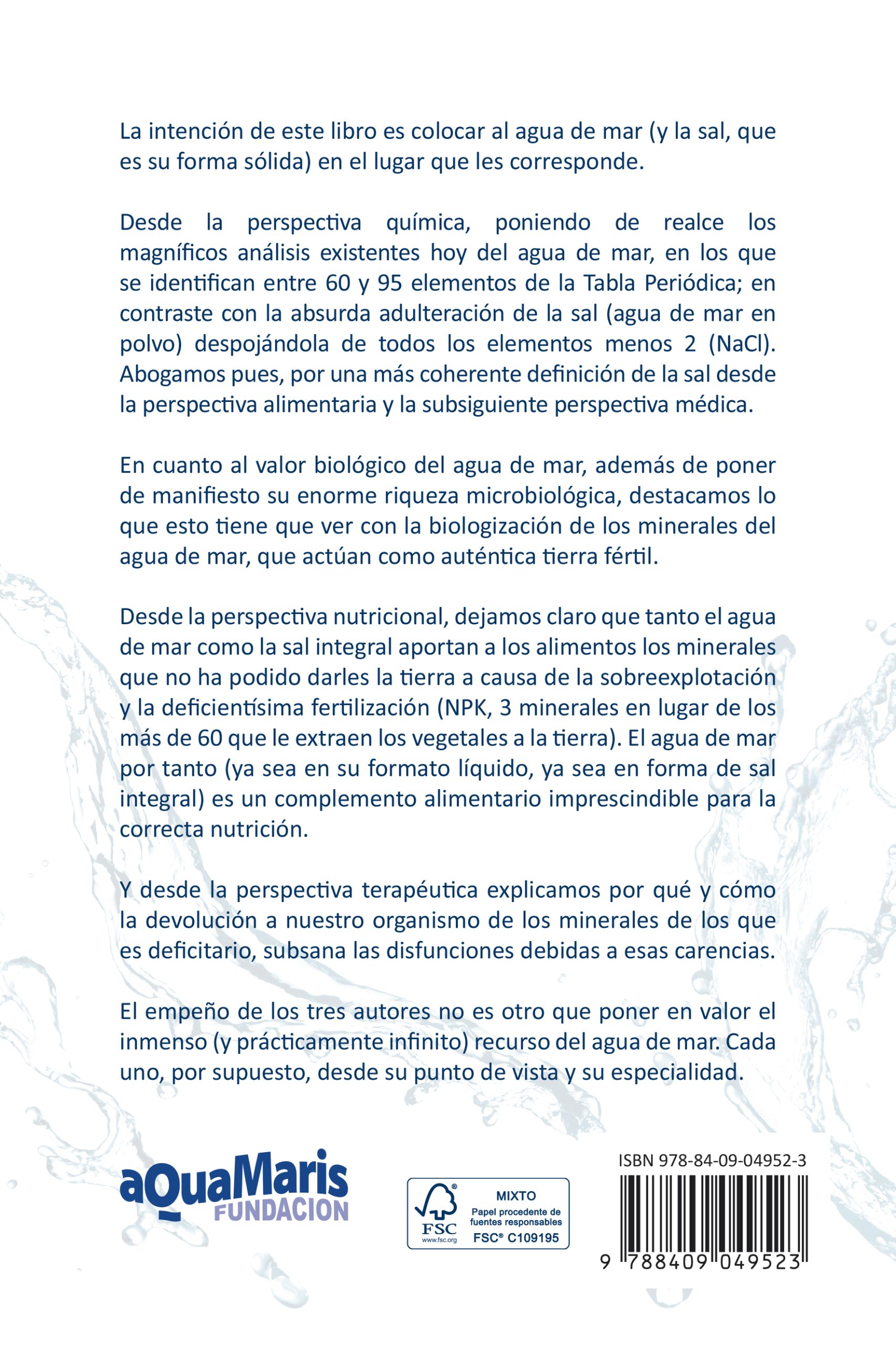 La intención de este libro es colocar al agua de mar (y la sal, que es su forma sólida) en el lugar que les corresponde.